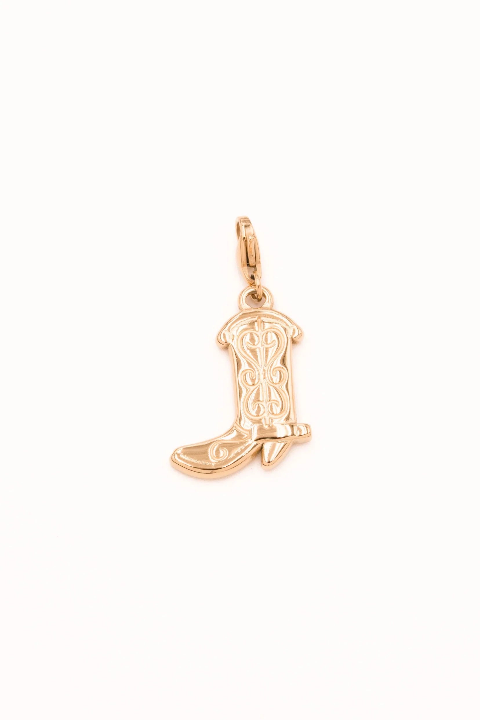 Yeehaw, sparkle! This mini cowboy boot charm is bringing big rodeo energy in the cutest way possible. With its swirly embossed details and high-shine gold finish, itβs your subtle nod to wild spirit and untamed vibes.